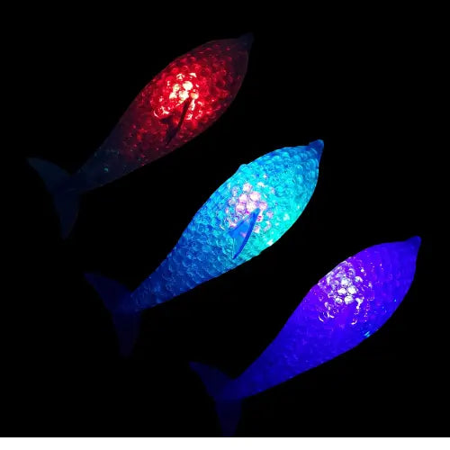 • These unique squeezy bead orbeez dolphins - RECEIVE 1 -  are even cooler since they include 3 AG13 batteries to light the toy up. The bead-filled dolphins are eye-catching.  7.5-inch in length.