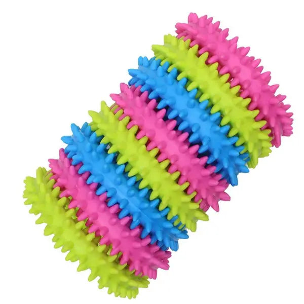 Made with 100% thermoplastic rubber, they do not have BPA, phthalates or latex. Our spiky rings are strong and durable for kids and adults alike. Dishwasher safe